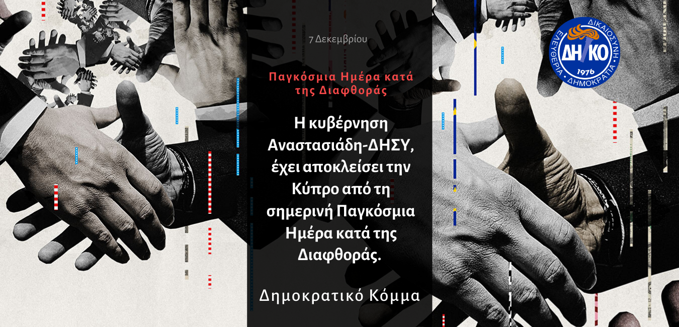 Η κυβέρνηση και προσωπικά ο Πρόεδρος της Δημοκρατίας με τη στάση και τη συμπεριφορά τους, έχουν αποκλείσει την Κύπρο από τη σημερινή Παγκόσμια Ημέρα κατά της Διαφθοράς.